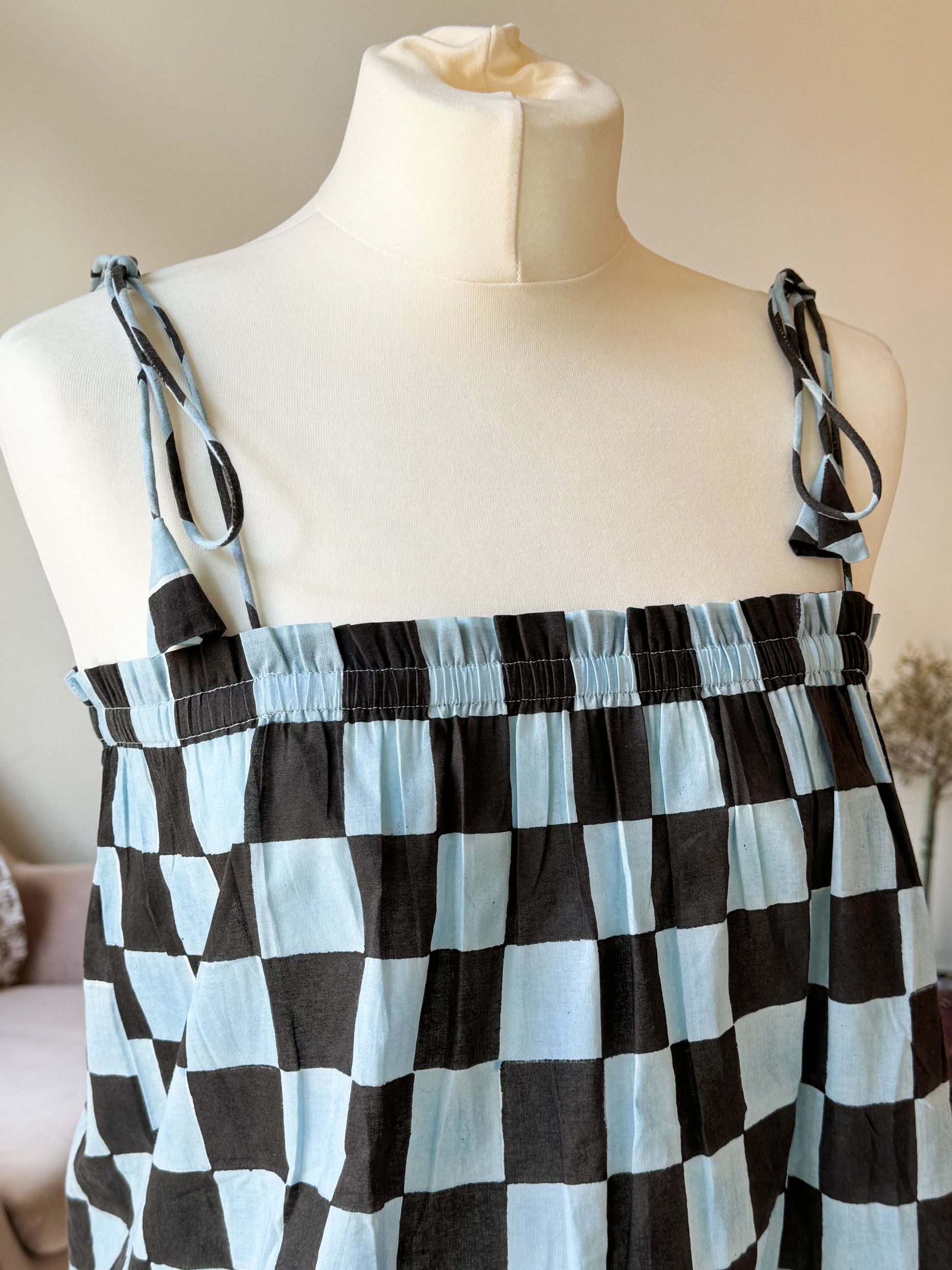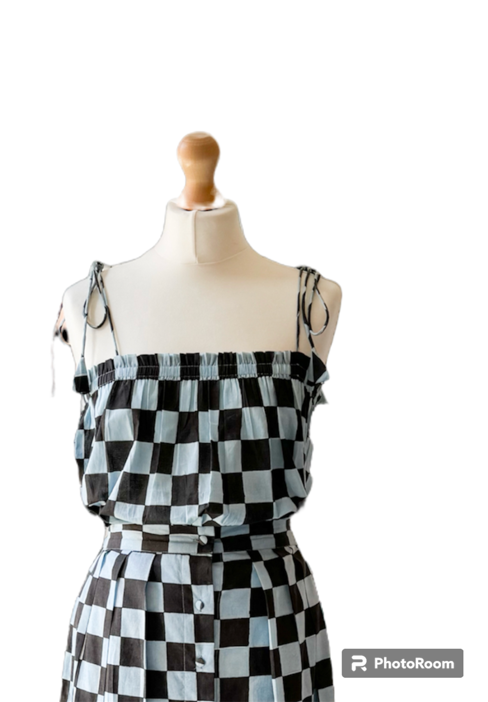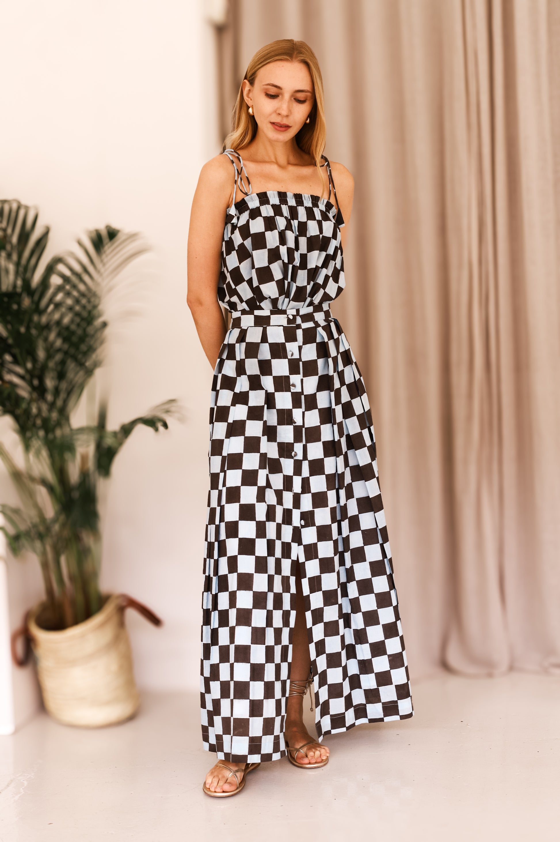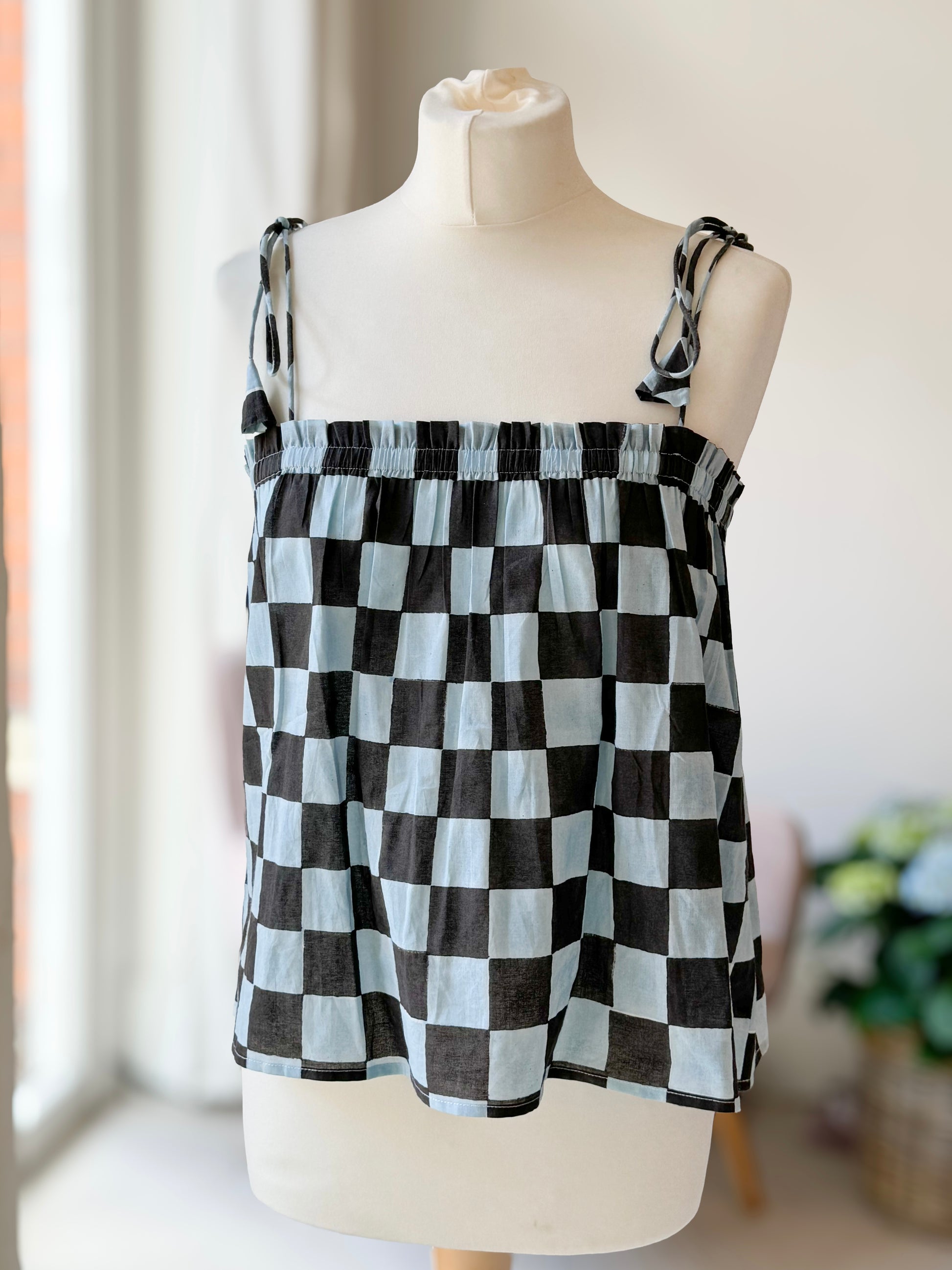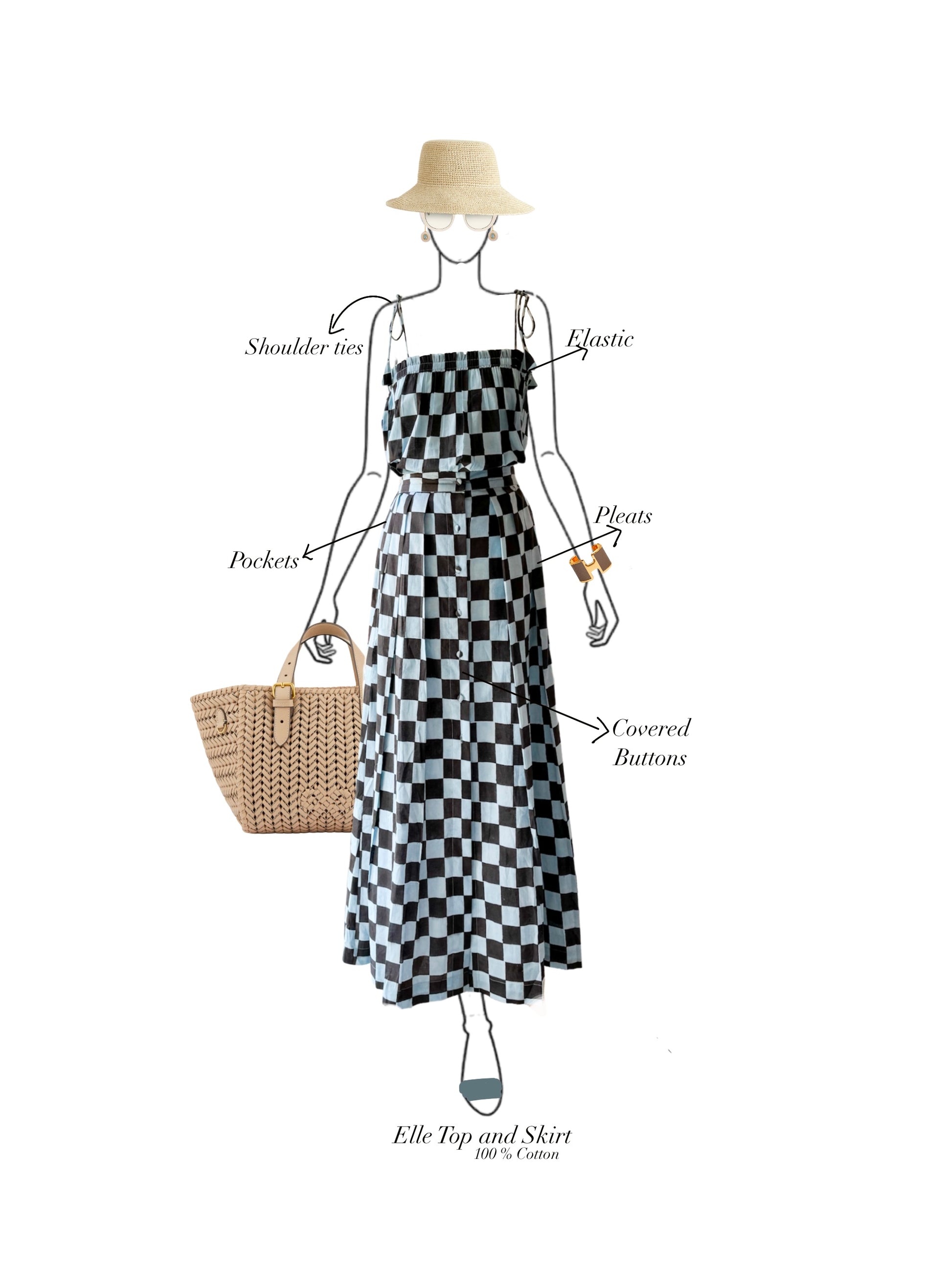 The Elle top is a versatile and stylish option with a playful take on checks. It pairs perfectly with the matching skirt, but can also create a chic look when paired with jeans or shorts for a casual summer outfit.
