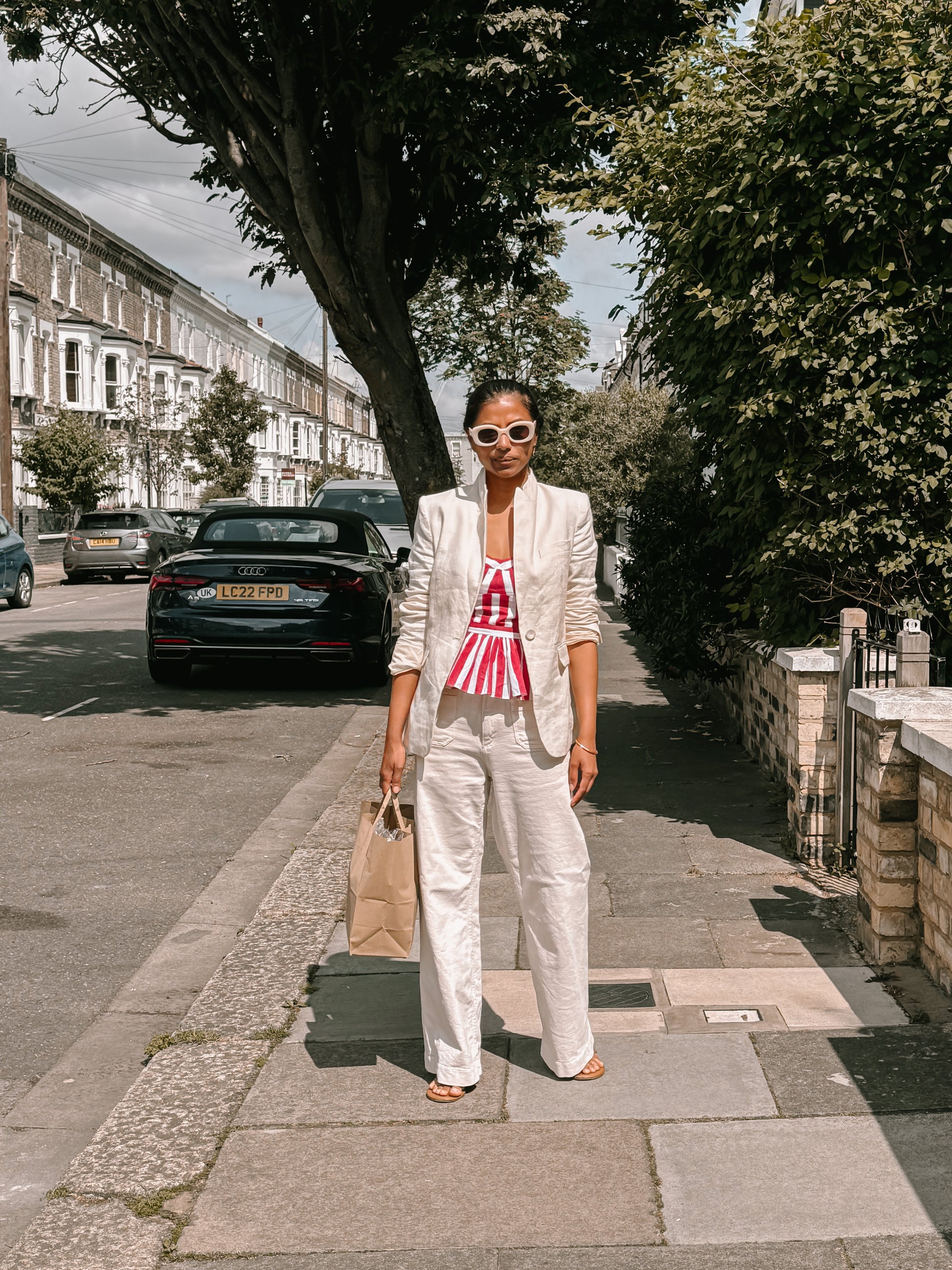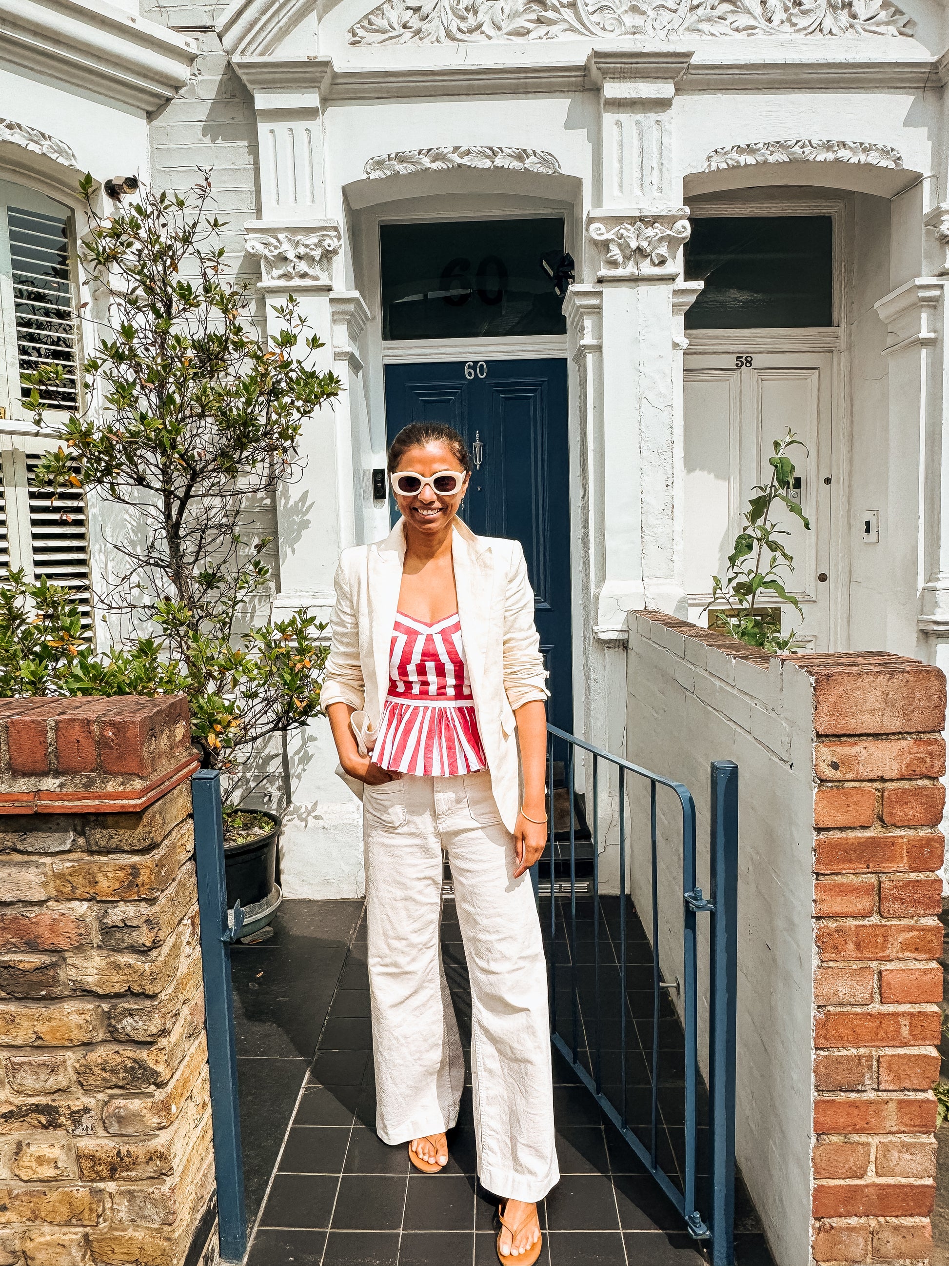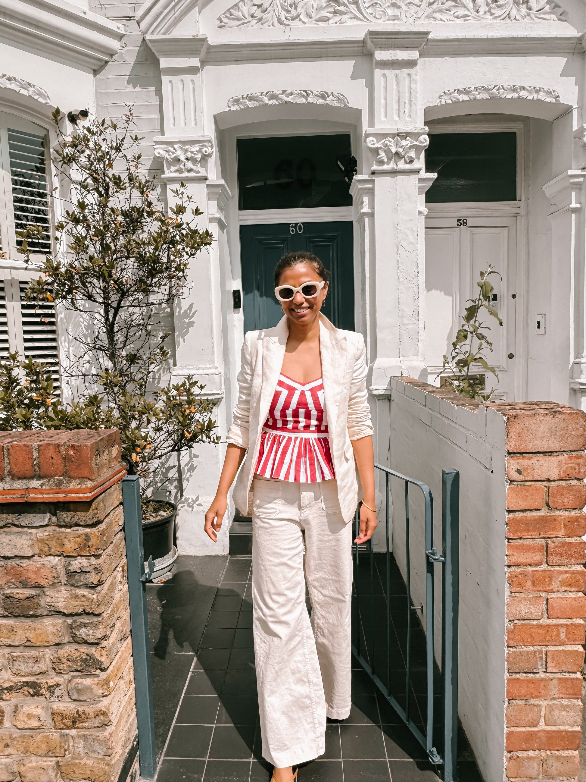 Available in Olive green, Blue, and Red stripes, it pairs effortlessly with everything from white denim to wide-leg trousers.