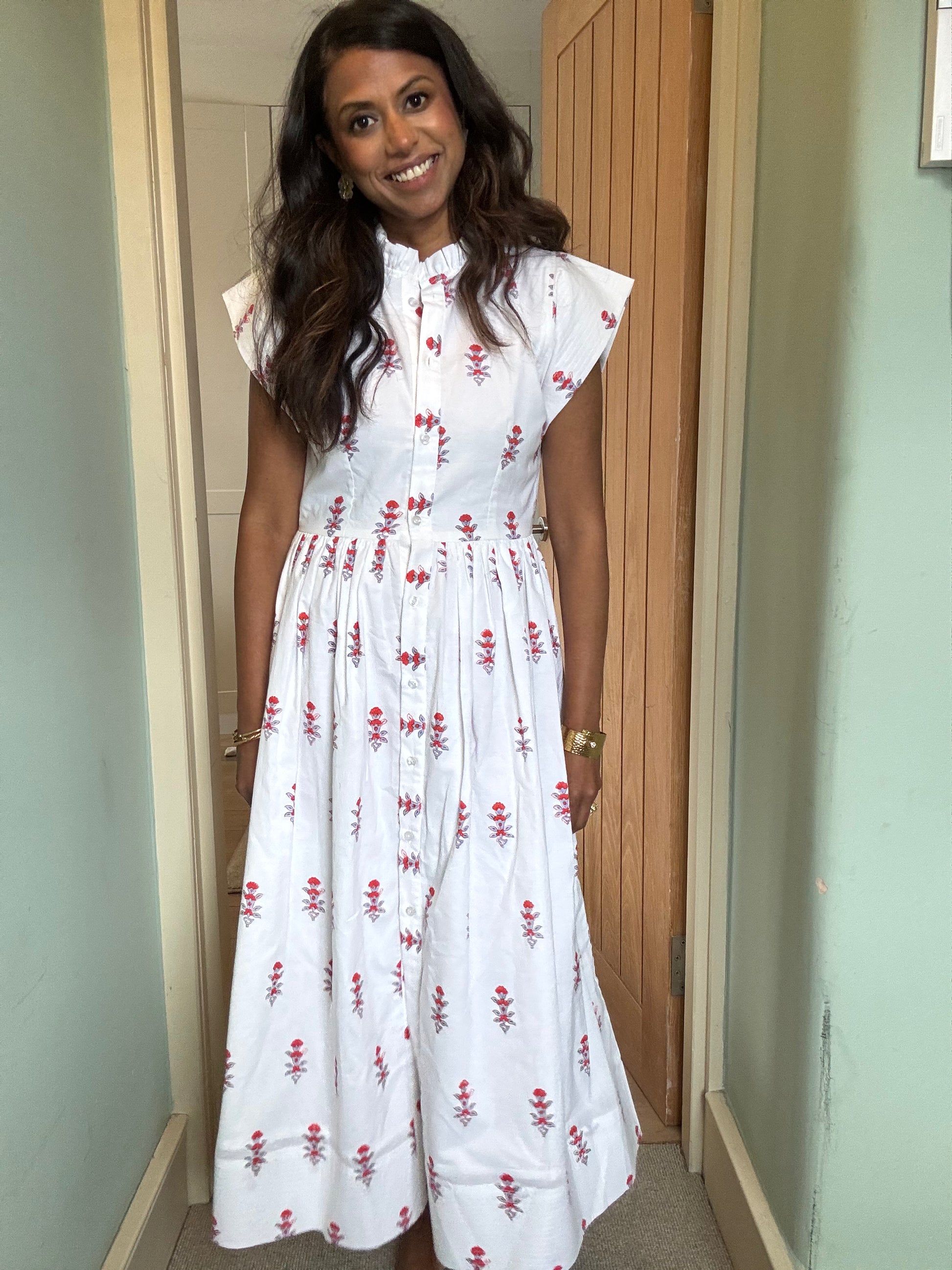 The Isobel Dress is our fresh take on a timeless shirtdress—belted, beautifully tailored, and finished in a delicate motif print. With its polished collar, flattering waist belt, and easy, feminine silhouette, it’s made for brunches, strolls through sunlit streets, and even the occasional office day.
